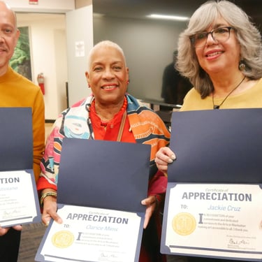 The Art of the Educator Show Reception was well attended on Oct. 23rd at the Manhattan Borough President’s Office. Thirty educators were celebrated and received certificates from the Borough President, as their art work is on display at the Maggie Peyton Gallery at 1 Centre Street, 19th floor south. This NYCATA/UFT exhibit is open to view until Dec. 3rd, during business hours.